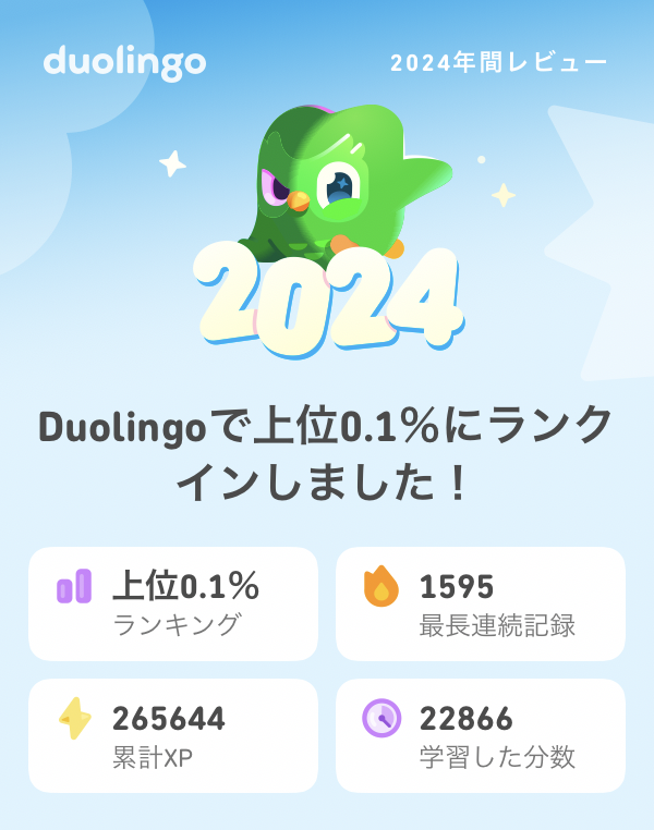 去年あまり本を読まなかったのは、精神的に余裕がなかったのもありますが、それ以上にデュオリンゴやりすぎていたのが原因だと思います。